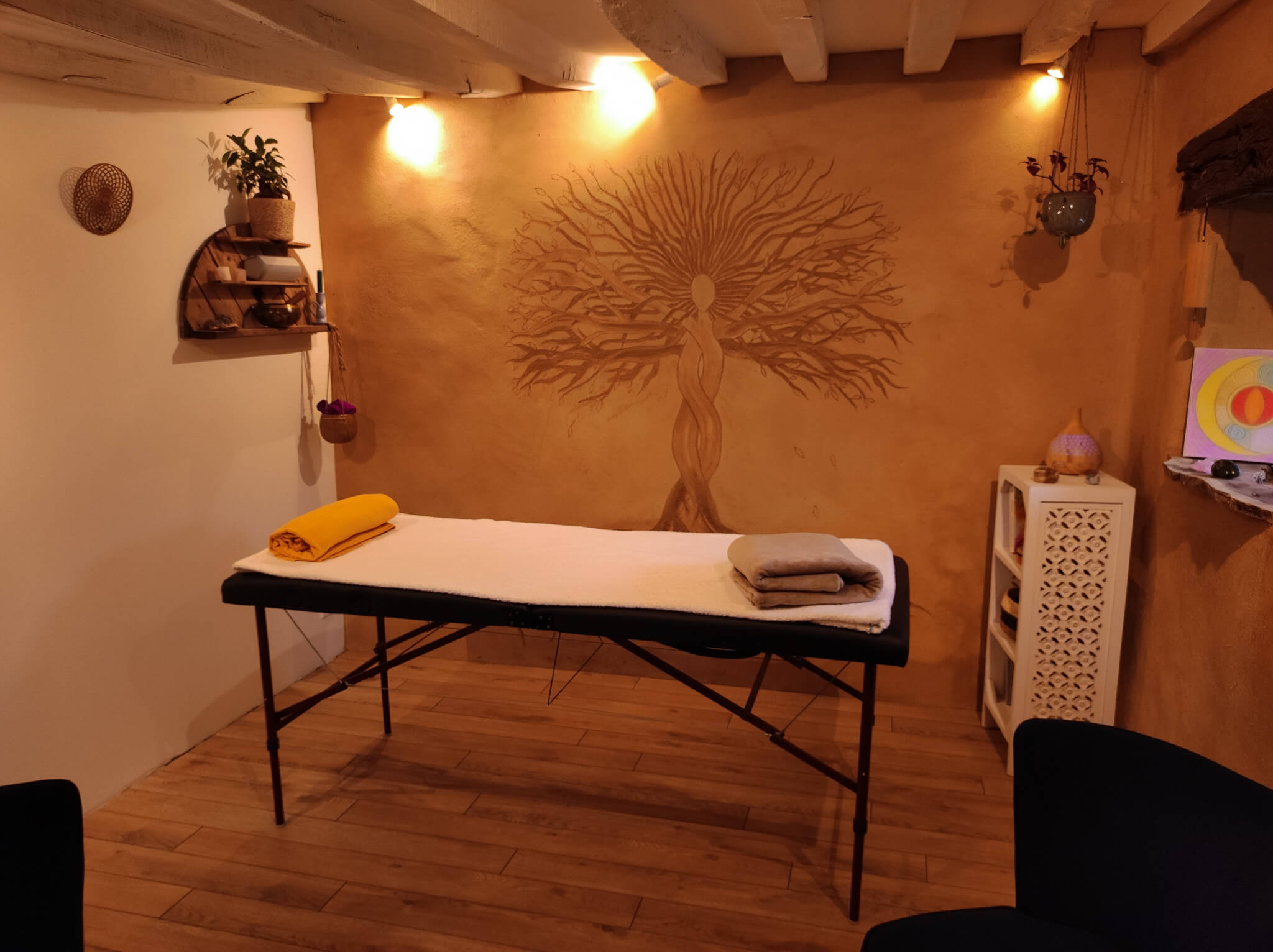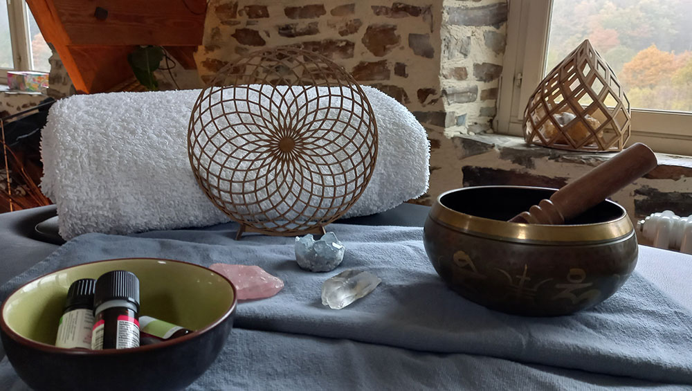 Je vous accueille à "l'Atelier du Bien-Être", rénové par nos soins et en accord avec nos valeurs : enduits naturels, murs en pierres, parquet.. afin de conserver l'authenticité du lieu et d'y assurer un accueil chaleureux. Thérapeute depuis plus de 10 ans, mes journées ont été très souvent rythmées par des protocoles de soins répétitifs… Aujourd'hui je vous propose un accompagnement sur-mesure, le fruit de mes connaissances en massages et en soins énergétiques ! Carillons, bol tibétain, tambour, minéraux,... peuvent venir compléter mes séances. J'utilise principalement des huiles végétales et huiles essentielles bio si possible locales. Mes séances peuvent se dérouler dans mon jardin, bercées par le courant du Noireau et les chants des oiseaux… Laissons-nous porter au gré de nos envies !